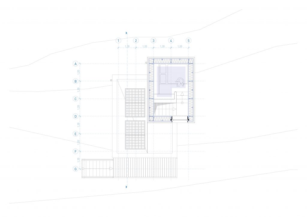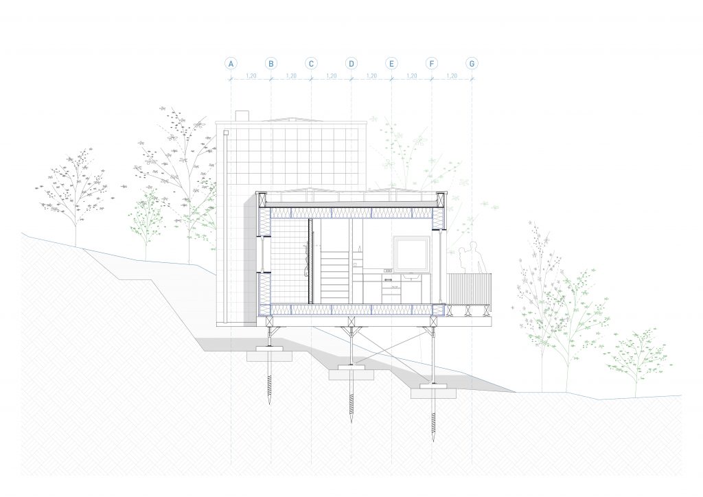 bewaldeten Grundstücks erschlossen, Das architektonische Konzept reagiert auf die